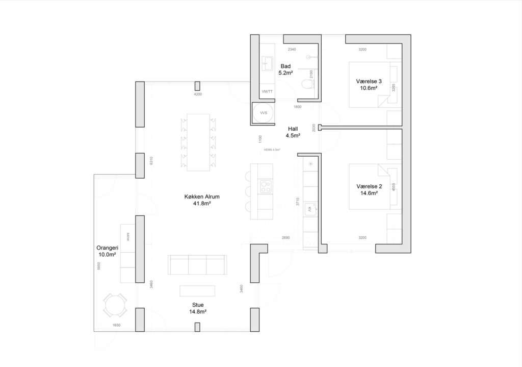 Størsteparten af husene i VILLEVILLE har sit eget 10 m² store orangeri, en eksklusiv og fleksibel overgang mellem inde og ude. Orangerierne er designet til at forlænge sæsonerne, så du kan nyde naturen året rundt – uanset vejret.